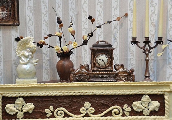A kalinyingrádi pláza fennállásának 5. évfordulóját nem mindennapi módon ünnepelte novemberben: a bevásárlóközpontban építettek egy 20 m2-es csokiszobát, 420 kg csokiból.