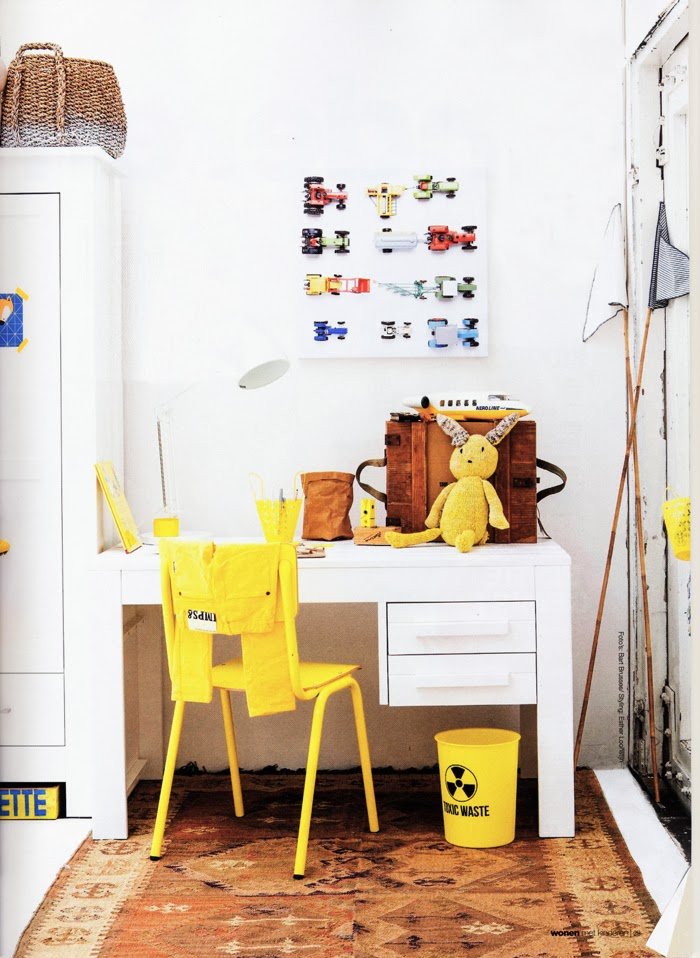 A gyerekszoba színvilágának kialakítása sok szülőnek okoz fejtörést. Vannak általánosan közkedvelt színek, mint a zöld, sárga, kék, rózsaszín, de érdemes meggondolni, hogy ezekből a színekből mi hol köszön vissza a szobában, és milyen mennyiségben. Alapszabály, hogy a nagy felületeken nyugodt, kellemes, lágy színeket használunk, a markánsabb színekkel esetleg kiemelhetünk egy-egy részletet – a játszósarkot, vagy az ágyat. Ebben az esetben a kiemeléssel egyben “kuckósítunk” is, amit a gyerekek nagyon szeretnek. Ha szereted gyakran változtatni egy szoba, vagy a lakás színvilágát, akkor a leggazdaságosabb, ha a kiegészítőkben keresel színeket, mert ezeket minden felfordulás nélkül bármikor le tudod cserélni. Élénk színeket is választhatsz a gyerekszobába (is), de mindig csak egyet, ami visszaköszön több felületen is. Emellett jelenjen meg egy másik, visszafogott, kiegészítő szín, ami lágyítja az előző harsány megjelenését. A lent látható szoba teljesen független kortól és a gyerek nemétől is, a fehér jó alap arra, hogy a kiegészítők lecserélésével bármilyen stílusú, hangulatú szobát alakítsunk ki, a kisbabától a kamaszig.